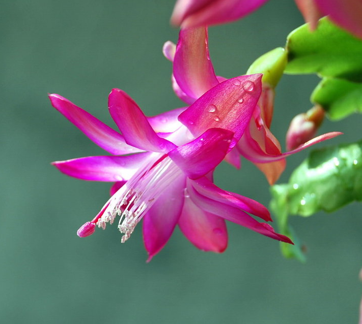 蟹爪兰(学名:Schlumbergera truncata (Haw.) Moran)是仙人掌科附生肉质植物,灌木状,茎悬垂,多分枝无刺,老茎木质化,幼茎扁平;鲜绿色或稍带紫色,顶端截形,花单生于枝顶,两侧对称;花萼顶端分离;花冠数轮,雄蕊多数,浆果梨形。 花期从10月至翌年2月;室内栽培的蟹爪兰可通过控制光照来调节花期。