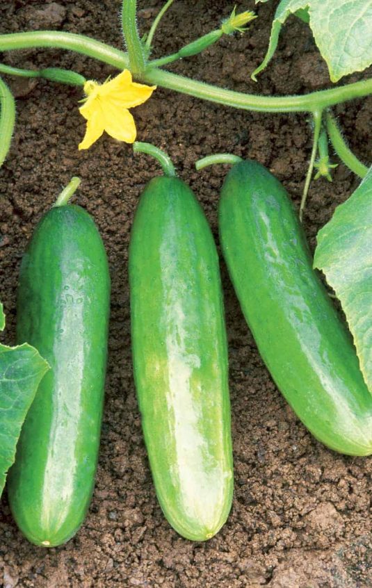 '沙拉布什'黄瓜只需要对其紧凑的藤蔓提供最低限度的支持,就能结出全尺寸的果实。